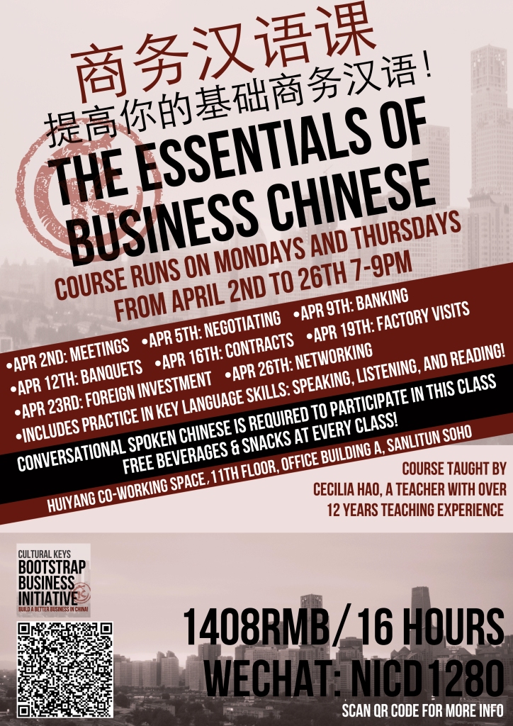 Did you learn something useful from this article? Want to learn more? Join us in April for our course on the Essentials of Business Chinese! Get 8 classes over 4 weeks for just RMB1408! Long press the poster and Scan QR Code for more information!